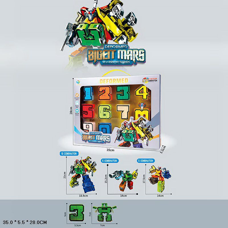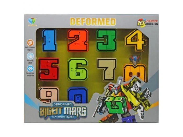 - У наборі 10 цифр, які збираються в єдину фігуру робота.