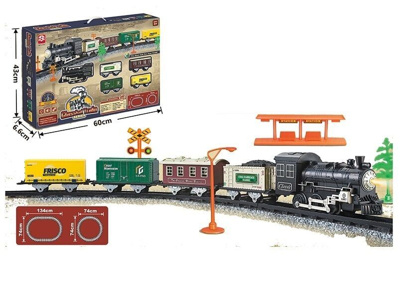 Цей набір дозволить вашому малюкові зібрати його власну невеличку залізницю, якою курсуватиме яскравий ретро-потяг. Локомотив включений до набору не тільки симулює звуки гудків та жвавий перестук коліс, але й сам їздить. Гра з цією залізницею чудово розважить вашу дитину за цікавою та креативною грою, а також дозволить їй потренувати свою фантазію та логічне мислення за збиранням різноманітних маршрутів для свого потяга