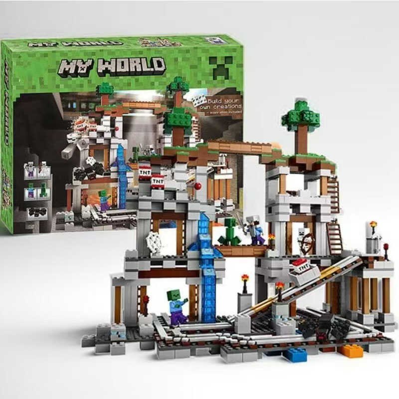 Конструктор 23019 “My world – Minecraft – Шахта” Великий конструктор дасть вам можливість зібрати підземну багаторівневу шахту, зі сходами, вагонетками і навіть підземним водоспадом. Причому верхня частина цієї шахти закінчується наземним рівнем, де навіть ростуть дерева. У цій шахті Стів за допомогою динаміту веде роботи з видобутку корисних ресурсів. Проте багате родовище привабило безліч ворогів Стіва. Тут його підстерігають Величезний Павук, Скелет-Лучник і зелений Кріпер, що вибухає. Як завжди у важких ситуаціях, обладунки Стіва йому обов’язково знадобляться. Зброя теж не залишиться без діла – і меч і кирка стануть у нагоді і в гірських роботах, і в битвах з ворогами.